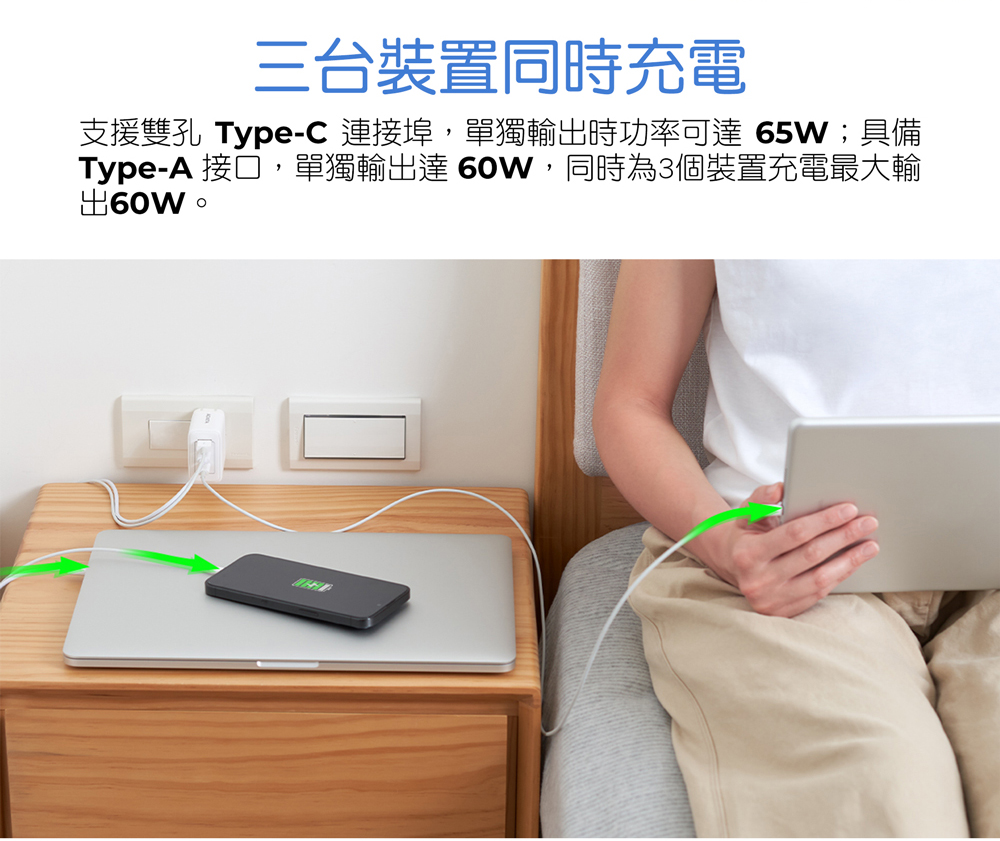 ● 支援筆電/平板/手機同步充電