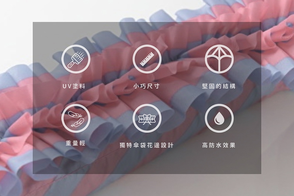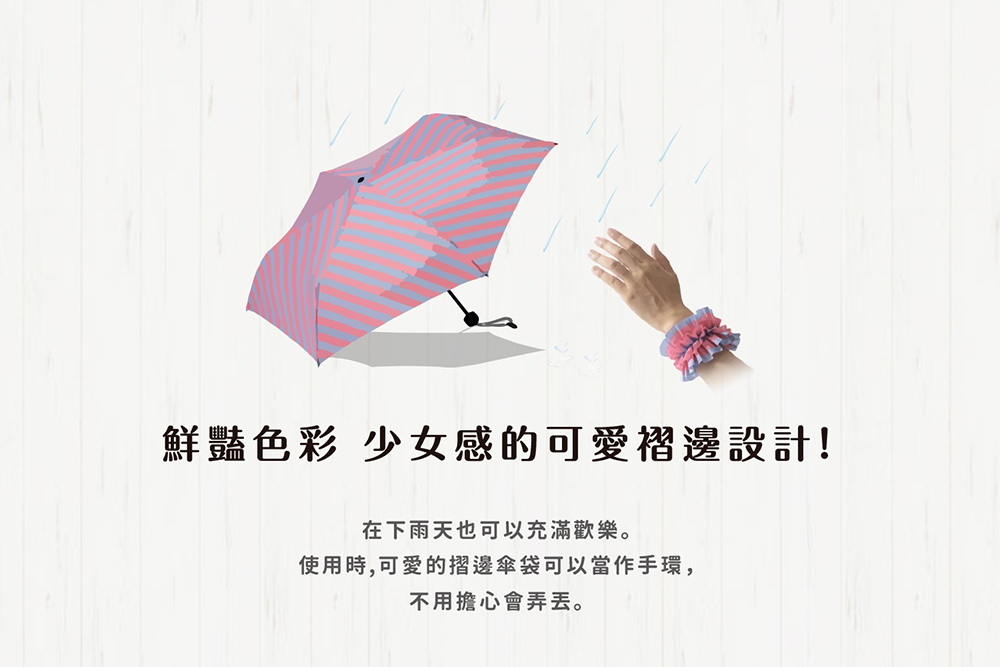 少女感褶邊設計,使用時褶邊傘袋可作手環,不用擔心會弄丟
