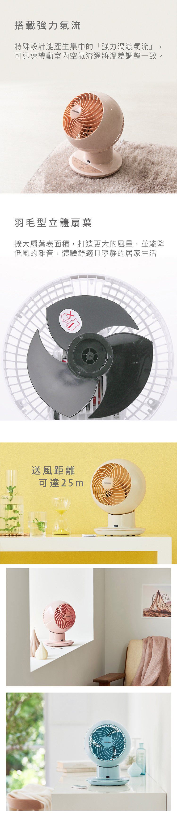 ● 特殊設計集中強力渦漩氣流,送風距離可達25m
