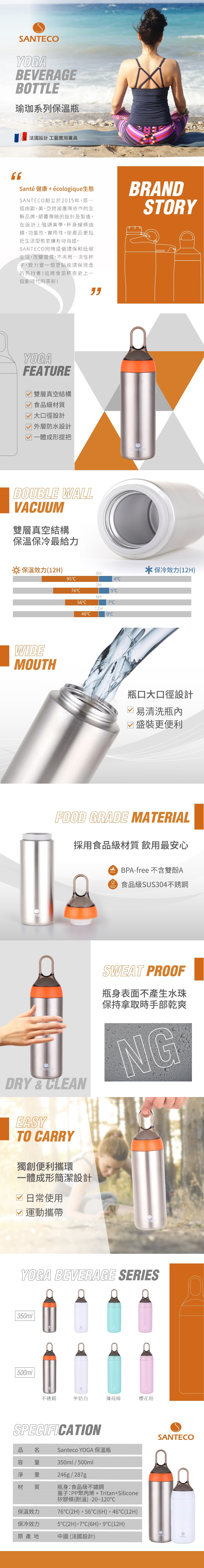 法國品牌及設計,雙層真空保溫保冷結構 ,採用食用級不鏽鋼材質,不含雙酚A零件 ,瓶身友善大口徑設計,安全接觸冷熱飲,便攜O型提環。