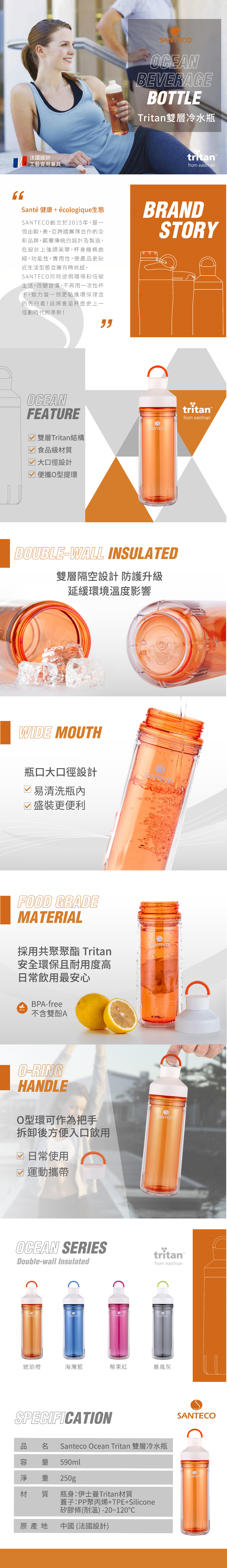 型號:0cean Tritan 雙層冷水瓶