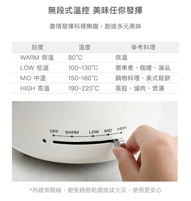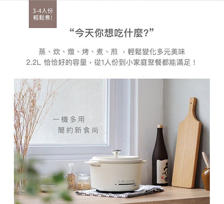● 一機多用: 蒸、炊、燉、烤、煮、煎
