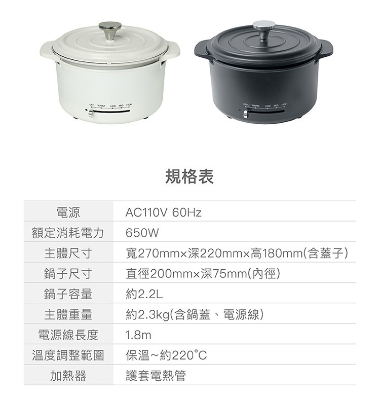 鍋子尺寸:直徑200mm X 深75mm(內徑)