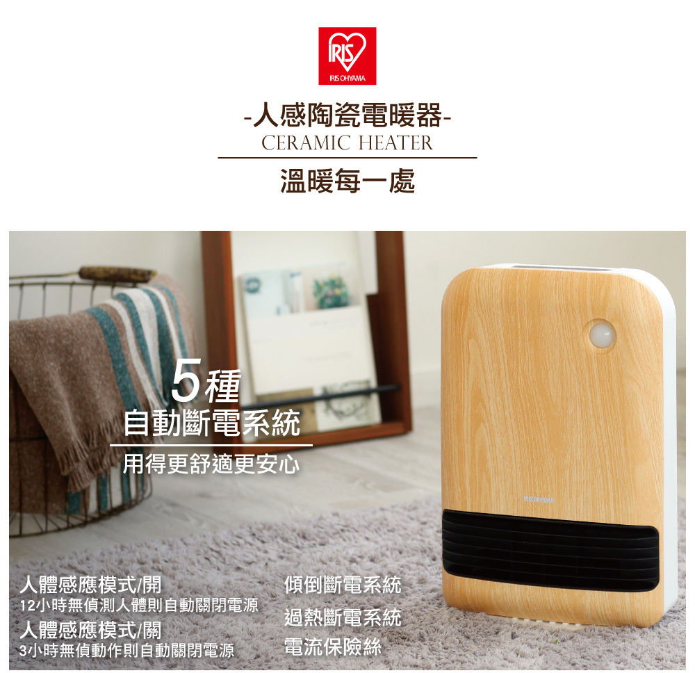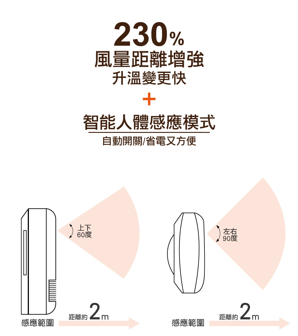 ※智慧人感偵測,安心開關隨到隨暖